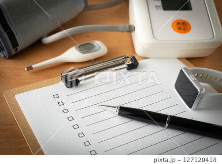 チェックリストと健康測定機器 チェックボックス 健康管理 健康寿命