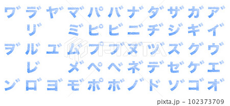 クレヨンで描かれたカタカナ一覧/濁点 半濁点 水色 背景白 パス付 他色/一文字アリ