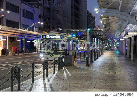 早朝の四条通商店街 四条高倉バス停 京都府京都市