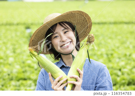 農業をする若い女性