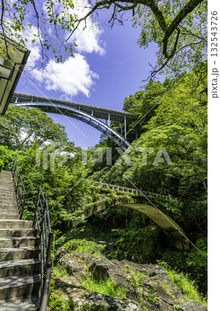 高千穂峡 神橋と高千穂大橋 宮崎県高千穂町