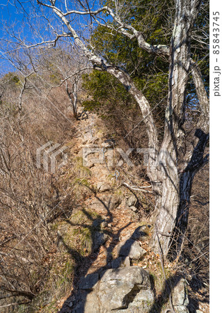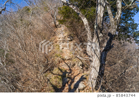 仏果山の山頂付近にあるクサリ場(東丹沢)