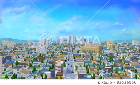 住宅街CG シンプル雲 街並み 風景 都会 背景