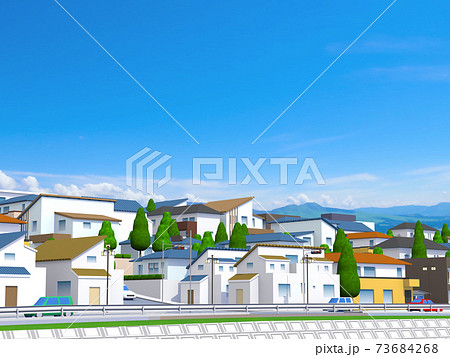 住宅街CG 住宅 街並み 風景 都会 道路 背景