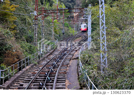 信貴山口駅に停車中の近鉄 西信貴鋼索線 ケーブルカー しょううん