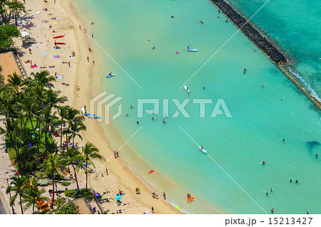 ワイキキビーチと防波堤 40階からの眺め