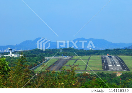 【香川県】高山航空公園から見た快晴の高松空港の滑走路