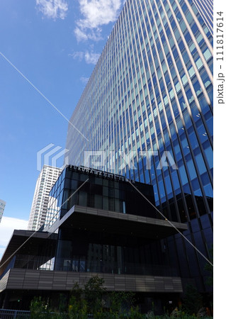 日本の横浜都市景観 みなとみらい線 新高島駅前のオフィス街などを望む=23日