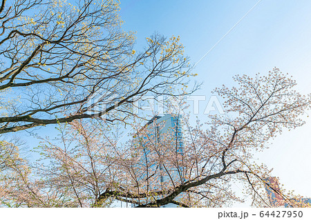 群馬県高崎市 シンフォニーロードと満開桜と高崎市役所