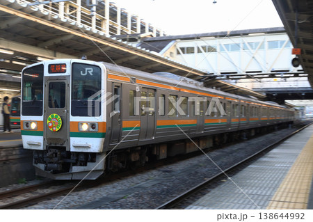 富田駅に停車中の両毛線211系電車