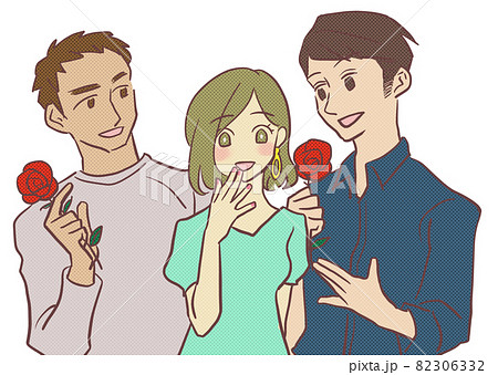 モテる モテモテ プレゼントを貰う 学生 女子生徒 美少女 上半身 イラスト素材