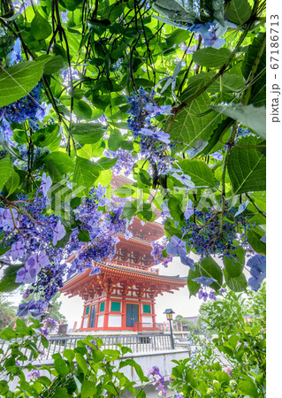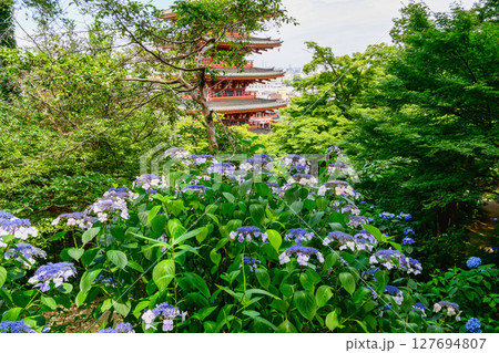 東京都日野市 高幡不動尊 金剛寺 五重塔と紫陽花