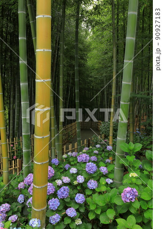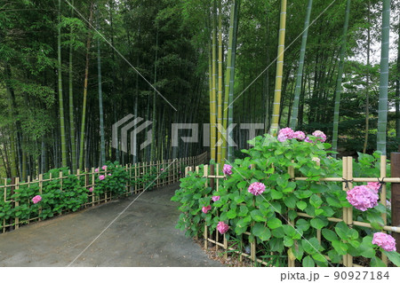 あじさいと竹林