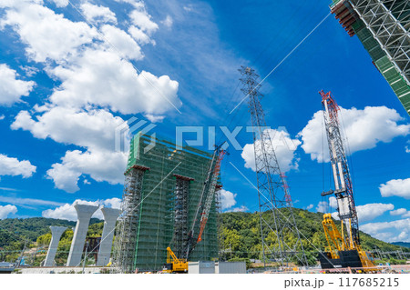 大阪府 新名神高速 真夏の淀川右岸の高槻高架橋工事