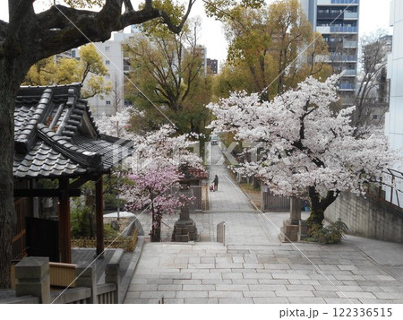 桜の季節の浪速高津宮(高津神社)表参道 2021年3月