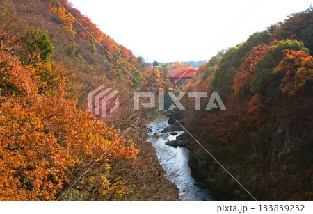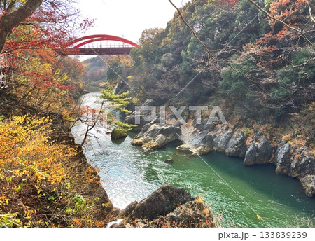 ながめ公園 高津戸橋 渡良瀬渓谷 紅葉はじめ 秋の風景