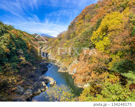 はねたき橋からの眺め 高津戸峡 高津戸渓谷 紅葉はじめ 秋の風景