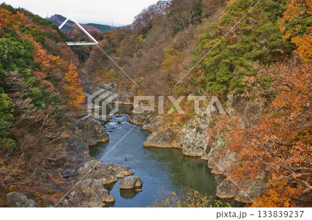 高津戸峡 高津戸渓谷 高津戸橋からの眺め 紅葉はじめ 秋の風景