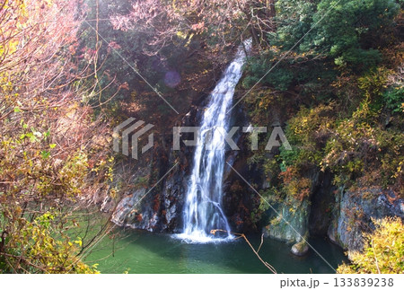 紅葉に彩られた群馬の渓谷に落ちる滝