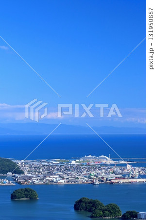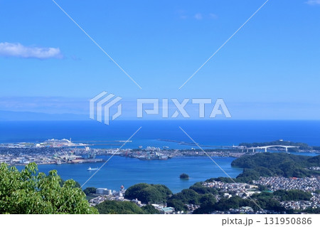 浦戸湾と奥に広がる土佐湾 清々しい青空 (高知県 鷲尾山より)