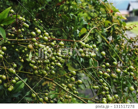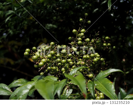 日差しを浴びた碧い南天の実(香長平野の秋)