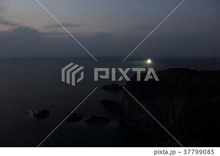 足摺岬灯台より夜明けに出漁する漁船「日本の灯台50選」(四国最南端の地)