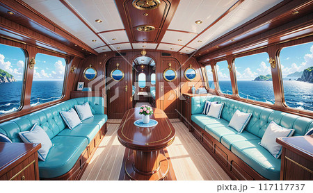 煌めく陽光と青空の下、波打つ海原を一望する悠然たるリビング