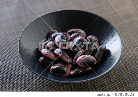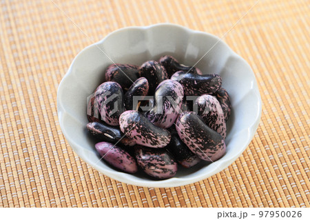 木の小皿に乗った紫花豆