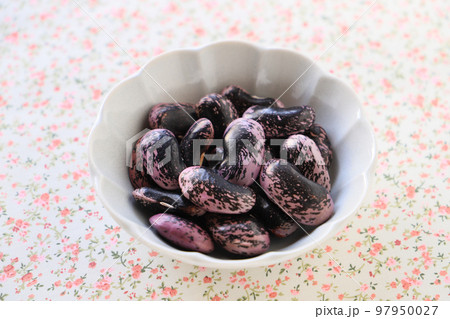 紫花豆 水で戻しているところ 煮豆用