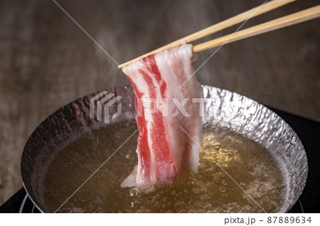 しゃぶしゃぶ 豚肉を出汁にくぐらせる