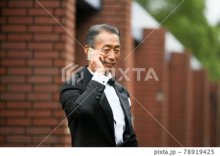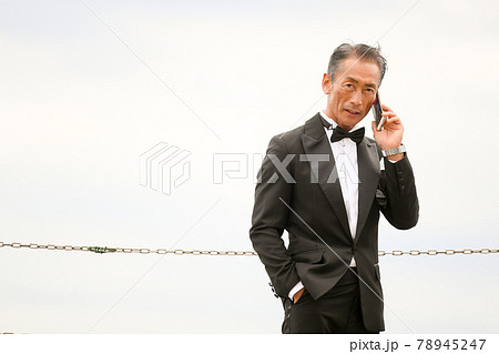 タキシード姿の男性 日本人 シニア、ミドル