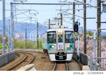 比良山麓 湖西線 小野 - 和邇駅を行く電車