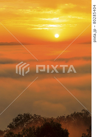 三次市高谷山展望台から見下ろす雲海に昇る朝陽