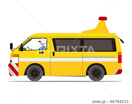 イラスト素材:サイレン、赤色灯で緊急走行中の交通機動隊のパトカー、日本の警察車両