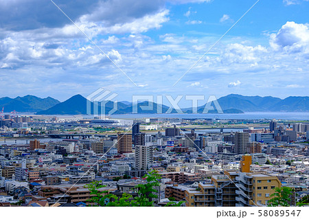 高知市の街並みと田んぼを眺める 夏 (高知県)
