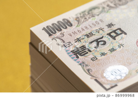 経済のイラスト素材 マネー 平らに積まれた札束 リアル風一万円札 七億円(2_3)