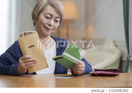 医療費を準備する笑顔のシニア女性