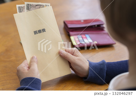 医療費を準備する女性の手元