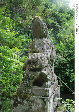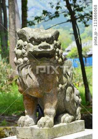 威嚇する唐獅子の石像(玉作湯神社/島根県松江市玉湯町玉造)
