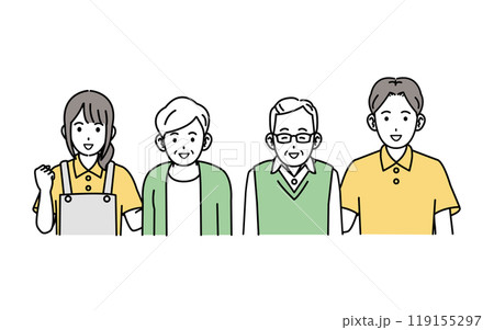 高齢の両親とミドル世代の夫婦 シンプルでお洒落な線画イラスト