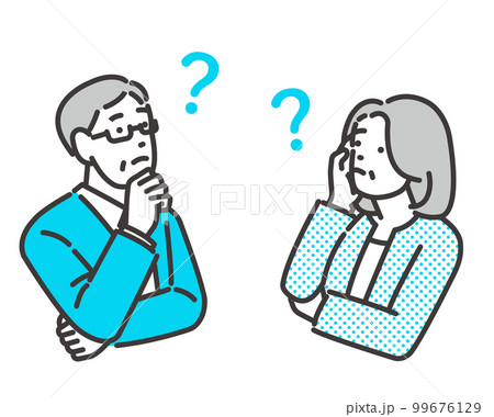 疑問に思うシニア世代の夫婦のイメージイラスト素材