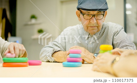 介護施設でレクリレーション かるたゲームをする高齢者 イラスト