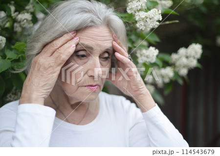 ベクターで描いた体調不良病院急病の高齢者シニアの上半身のイラスト素材
