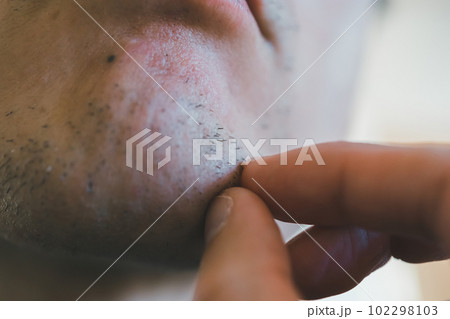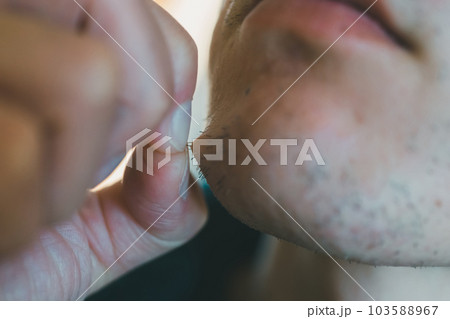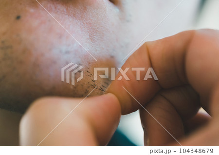 あごヒゲを指で抜く男性