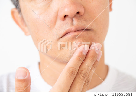 男性のアゴの髭剃り跡のアップ