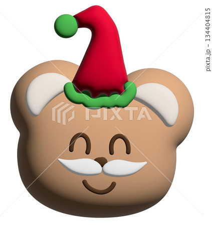 Cute inflated 3D illustration of teddy bear head wearing Santa beard for Christmas model, festive winter season, sticker, animal, zoo, souvenir shop, cartoon character, standee, patch, brooch, mascot