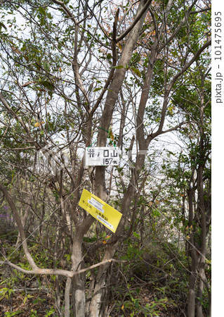 群馬県高崎市榛名湖町の榛名湖北側の登山道(烏帽子ヶ岳と鬢櫛山の分岐道標)