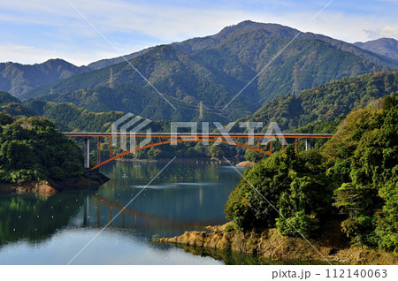 秋の宮ヶ瀬湖 紅葉の丹沢山地