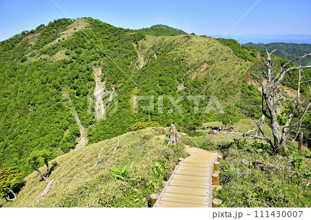 丹沢山地の不動ノ峰より 丹沢主脈の道上より望む蛭ヶ岳と緑の山地