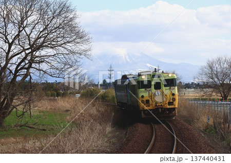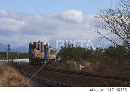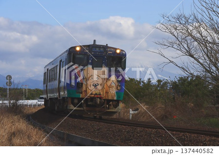 米子鬼太郎空港前の境線を快走する特別塗装の列車 … 鳥取県 境港市(晴れ)